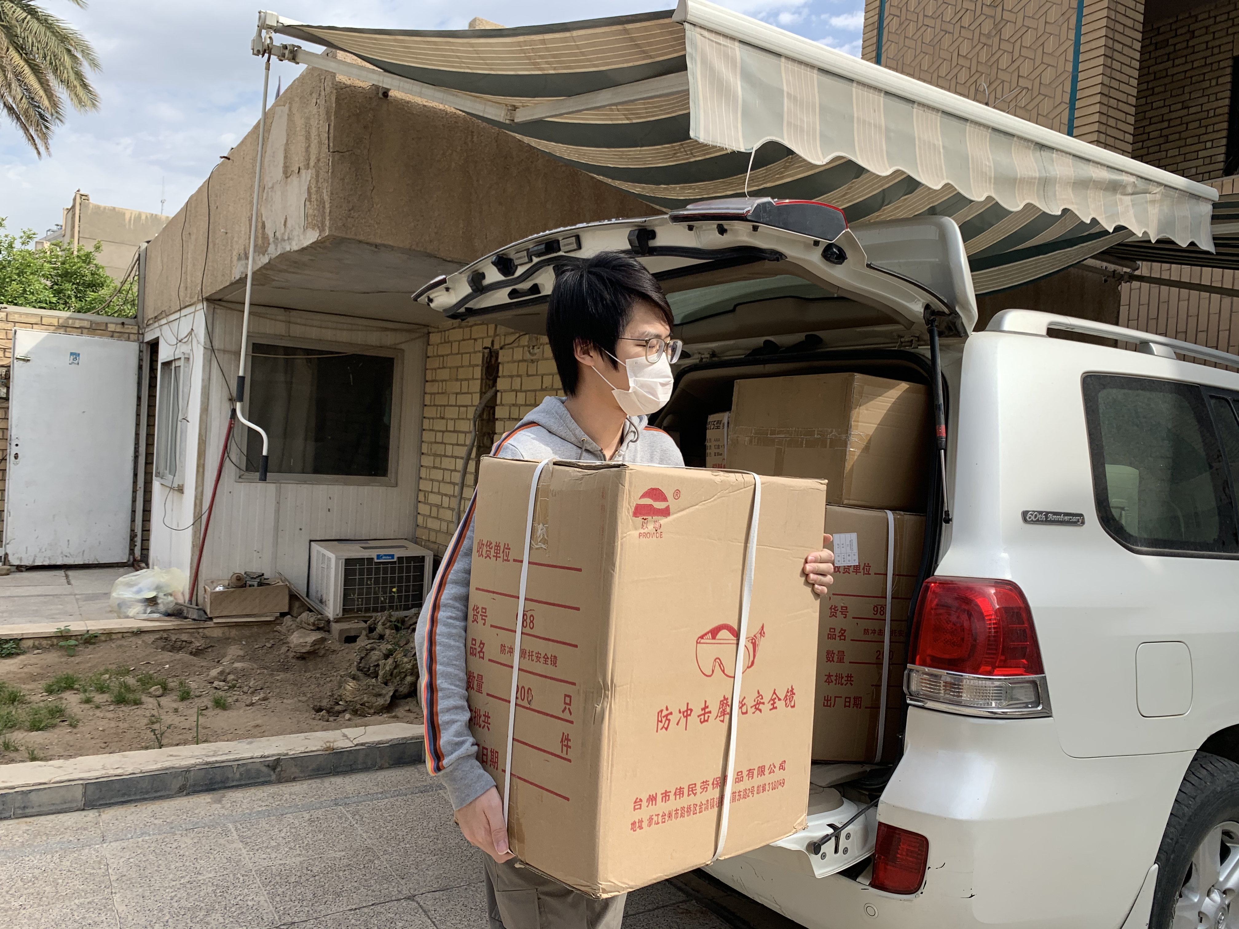 不久伊拉克也出现了疫情,由于伊拉克动荡多年,防疫难度很大。每天除了完成自己的工作外,赵海智还会关注伊拉克疫情发展情况,定期向国内领导做汇报;与现场保持沟通,为办事处的当地雇员讲授防疫知识,为他们发放口罩和酒精。除此之外,他还与中伊商会进行对接,为CMEC在伊的多个项目现场订购防疫物品。